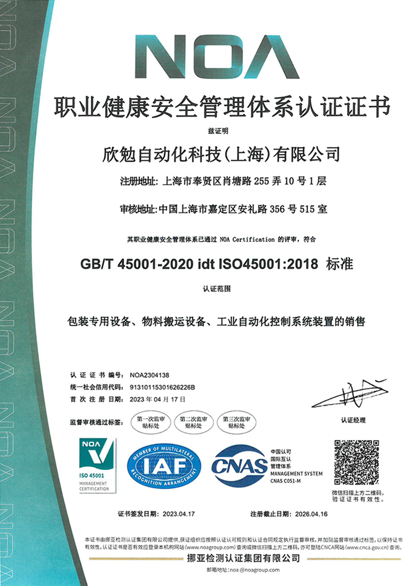 职业健康安全管理体系认证证书